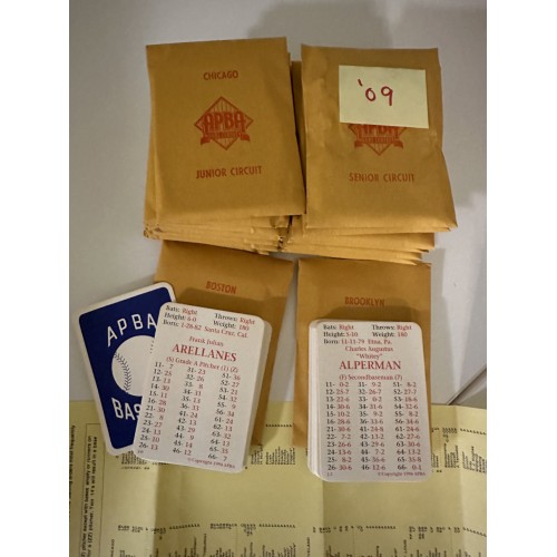 APBA Baseball Season: 1909 /12 on 46 /Teams: 16 /Cards per team: 25 /Total Card: 400 /Year Published: 1994 /Original/Reprint: Original /Condition: Good /Marks/Writing: Year/Team