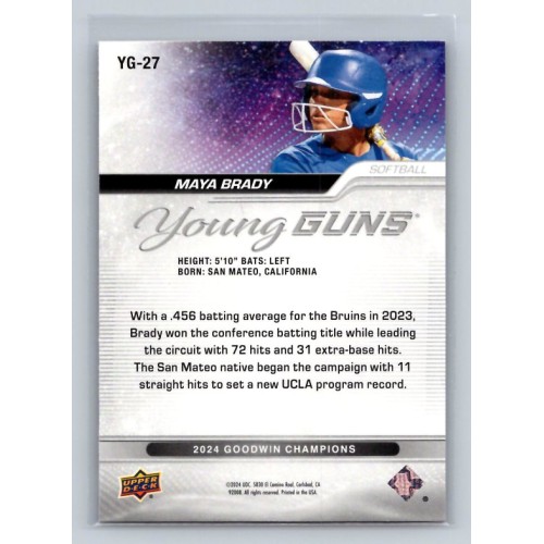 2024 Upper Deck UD Goodwin Champions Maya Brady Upper Deck Young Guns #YG-27 Prospect Softball 1:3 h, 1:3 e, 1:3 b