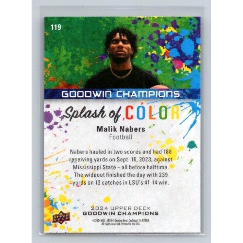 2024 Upper Deck UD Goodwin Champions Malik Nabers Base Splash of Color #119 Rookie Football 1:2 h, 1:2 e, 1:2 b