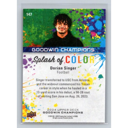 2024 Upper Deck UD Goodwin Champions Dorian Singer Base Splash of Color #147 Prospect Football 1:2 h, 1:2 e, 1:2 b