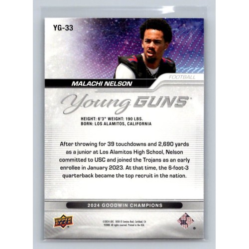2024 Upper Deck UD Goodwin Champions Malachi Nelson Upper Deck Young Guns #YG-33 Prospect Football 1:3 h, 1:3 e, 1:3 b
