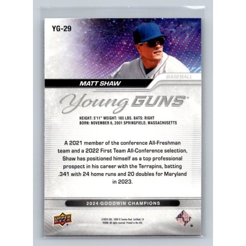 2024 Upper Deck UD Goodwin Champions Matt Shaw Upper Deck Young Guns #YG-29 Prospect Baseball 1:3 h, 1:3 e, 1:3 b