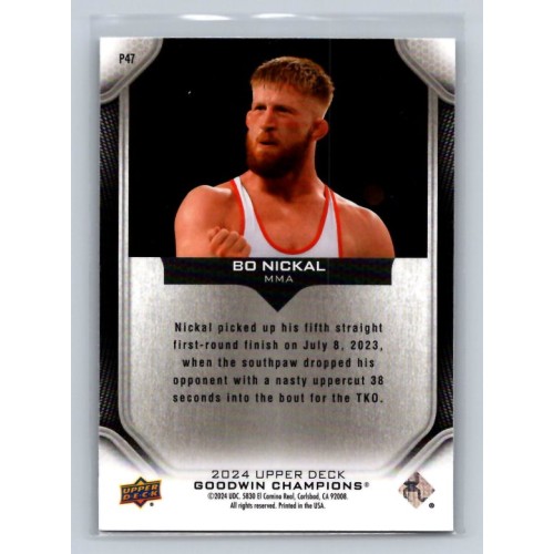 2024 Upper Deck UD Goodwin Champions Bo Nickal Platinum #P47 Rookie MMA 1:5 h, 1:5 e, 1:10 b