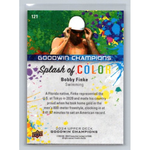 2024 Upper Deck UD Goodwin Champions Bobby Finke Base Splash of Color #121 Rookie Swimming 1:2 h, 1:2 e, 1:2 b